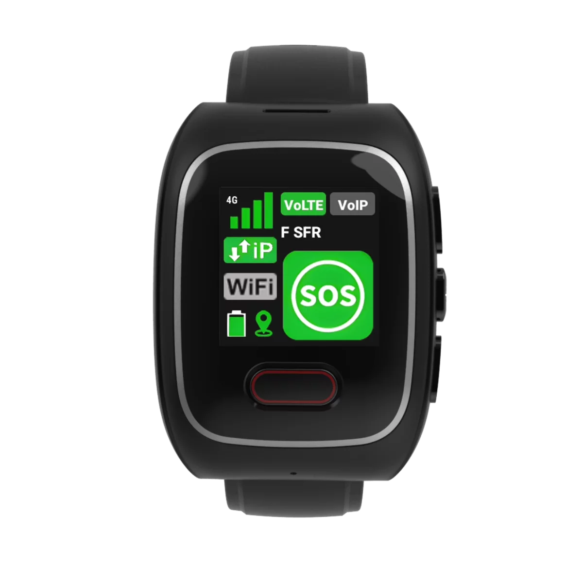 The Emerit e-WG200 is a personal alarm device from the manufacturer Magneta. It can be worn using various accessories, like a wristband, belt clip and carbine hook.